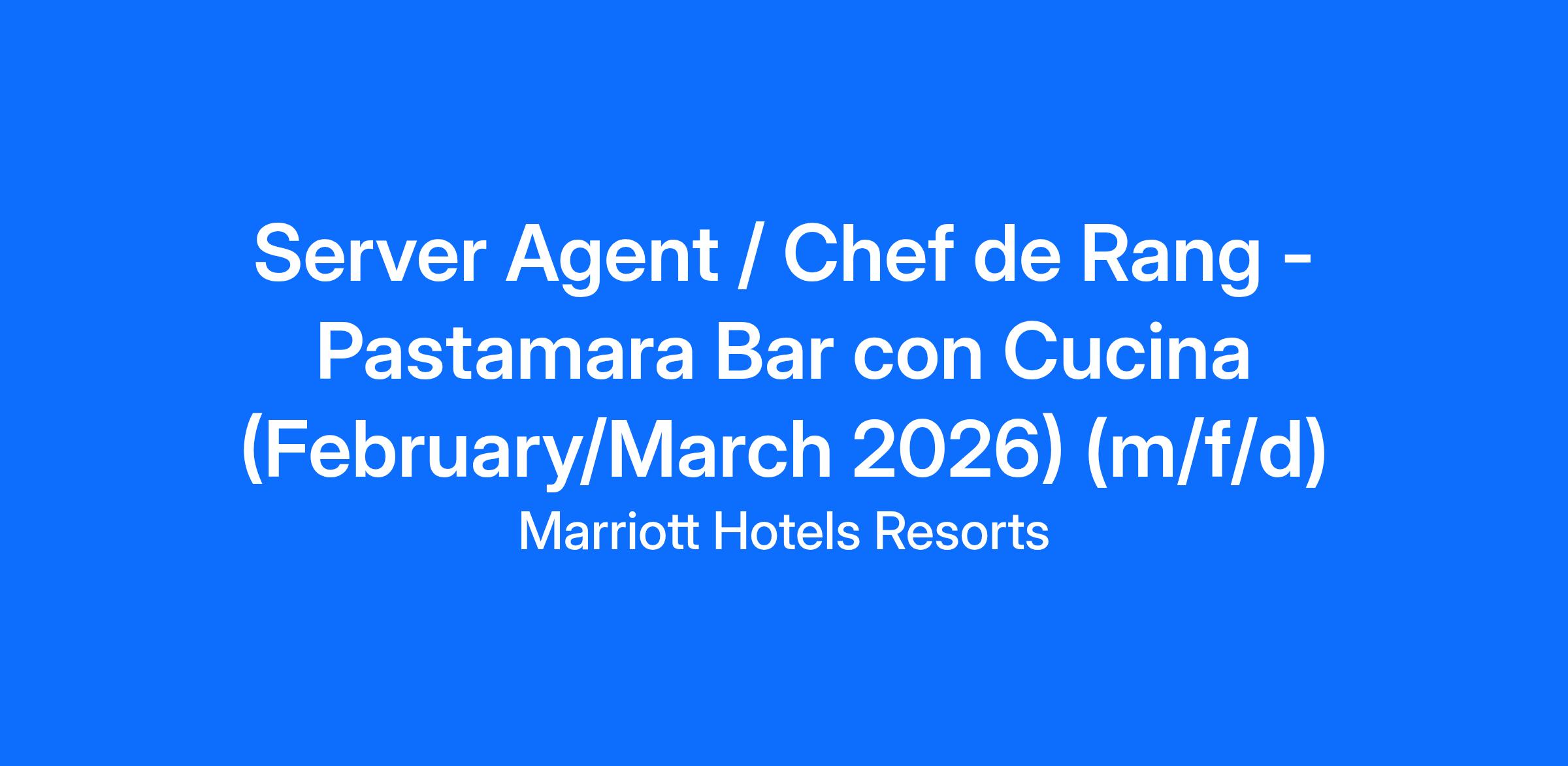 Server Agent / Chef de Rang – Pastamara (February/March 2026)